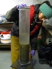 For this, MERP scientists have been running R.V Plymouth Quest cruises every 8-10 weeks to the reference site known as 'L4', 15 km SW of Plymouth. Here scientists have been using corers to get field data, and bringing sediment cores to the lab where we use different techniques, including stable isotopes for carbon and nitrogen. Key pathways investigated are: feeding processes (from the species filtering what is in the water column as food, to those eating them, small and large); bioturbation (the way in which animals burrowing in the sediment may bury fresh food like seaweed debris and plankton settling on the sediment surface and therefore make it available to deeper burrowing animals); and bioirrigation (the flushing of the sediment by burrowing animals, which may lead to a new release of the carbon that was once eaten (as seaweed and plankton) back to the water column.